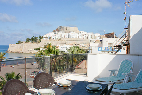 Ático en primera línea de playa, con dos terrazas, una con vistas al paseo marítimo y el castillo y otra con vistas a la plaza Felipe V, Castillo y la montaña.